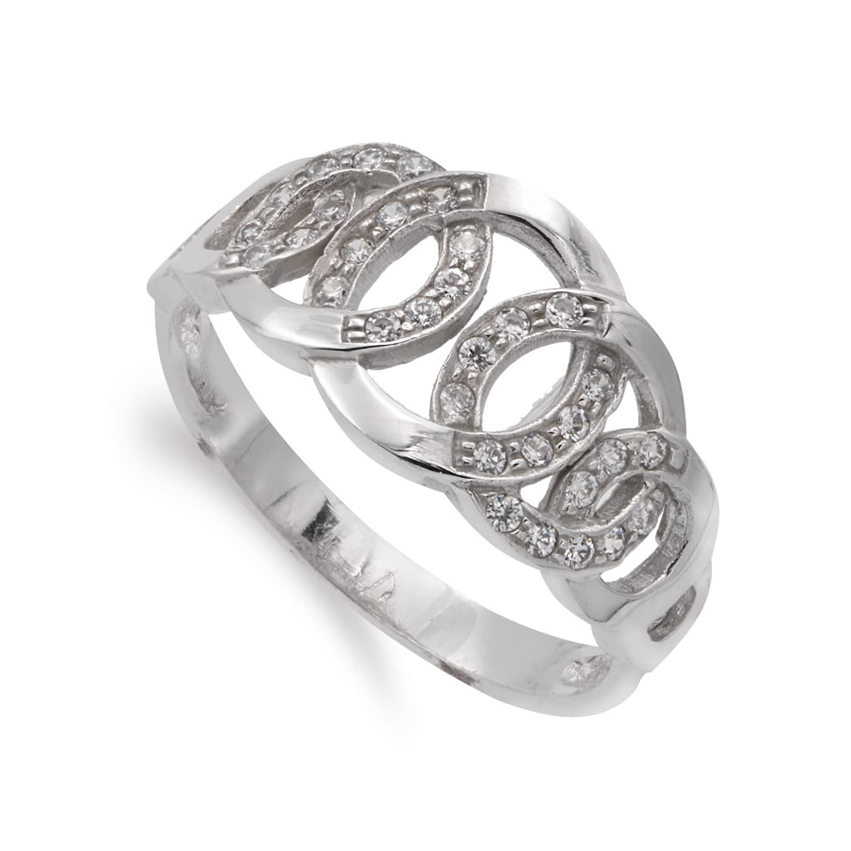 18K SORTIJA ORO BLANCO CON CIRCULOS BRILLO Y CIRCONITAS. ANCHO 10 MM