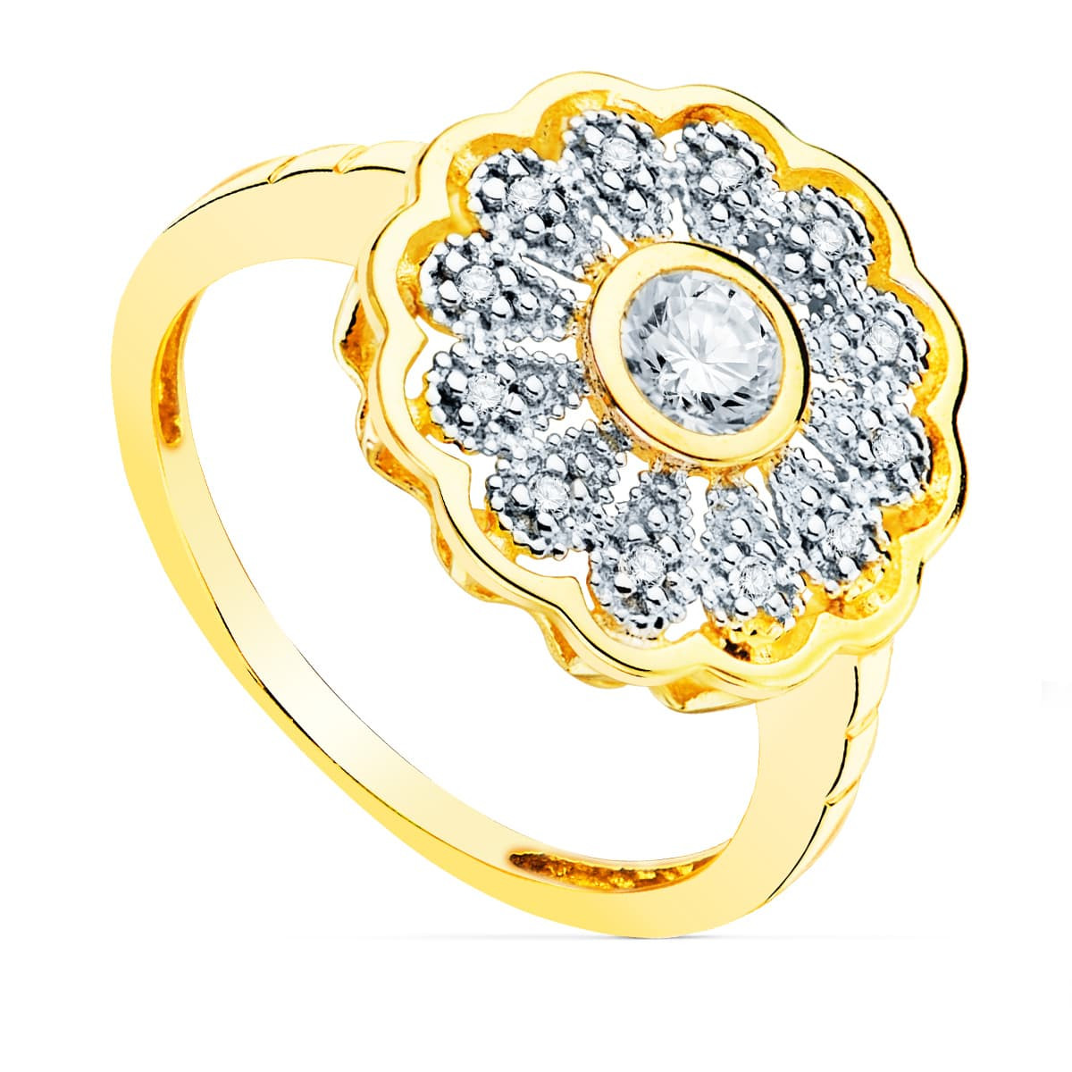 18K SORTIJA ORO BICOLOR ROSETON CON CIRCONITA 14 MM CIRCONITA CENTRAL 4 MM