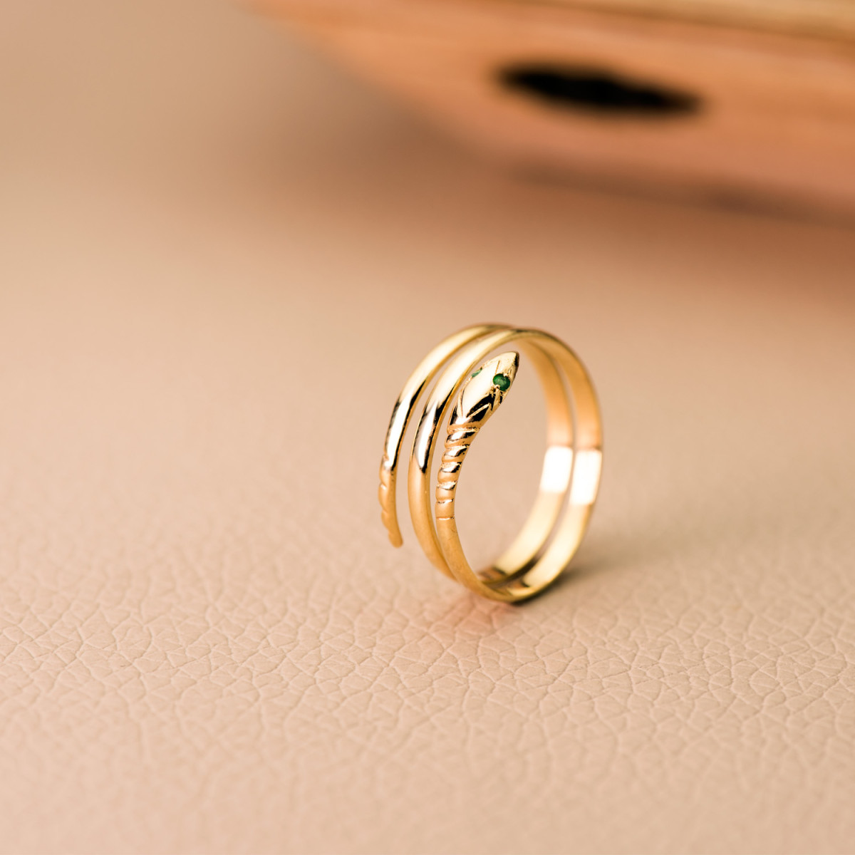 18K SORTIJA ORO AMARILLO SERPIENTE 2 VUELTAS CON OJOS DE ESMERALDAS