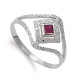 18K SORTIJA ORO BLANCO ROMBO CON RUBI Y CIRCONITAS. ANCHO: 13 MM