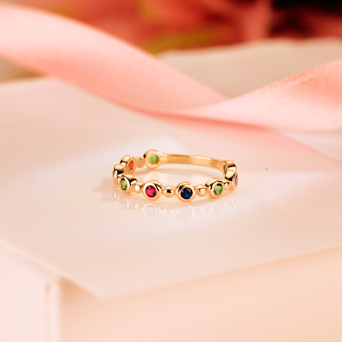 18K SORTIJA ORO AMARILLO CIRCULOS CON CIRCONITA COLORES. ANCHO: 3MM