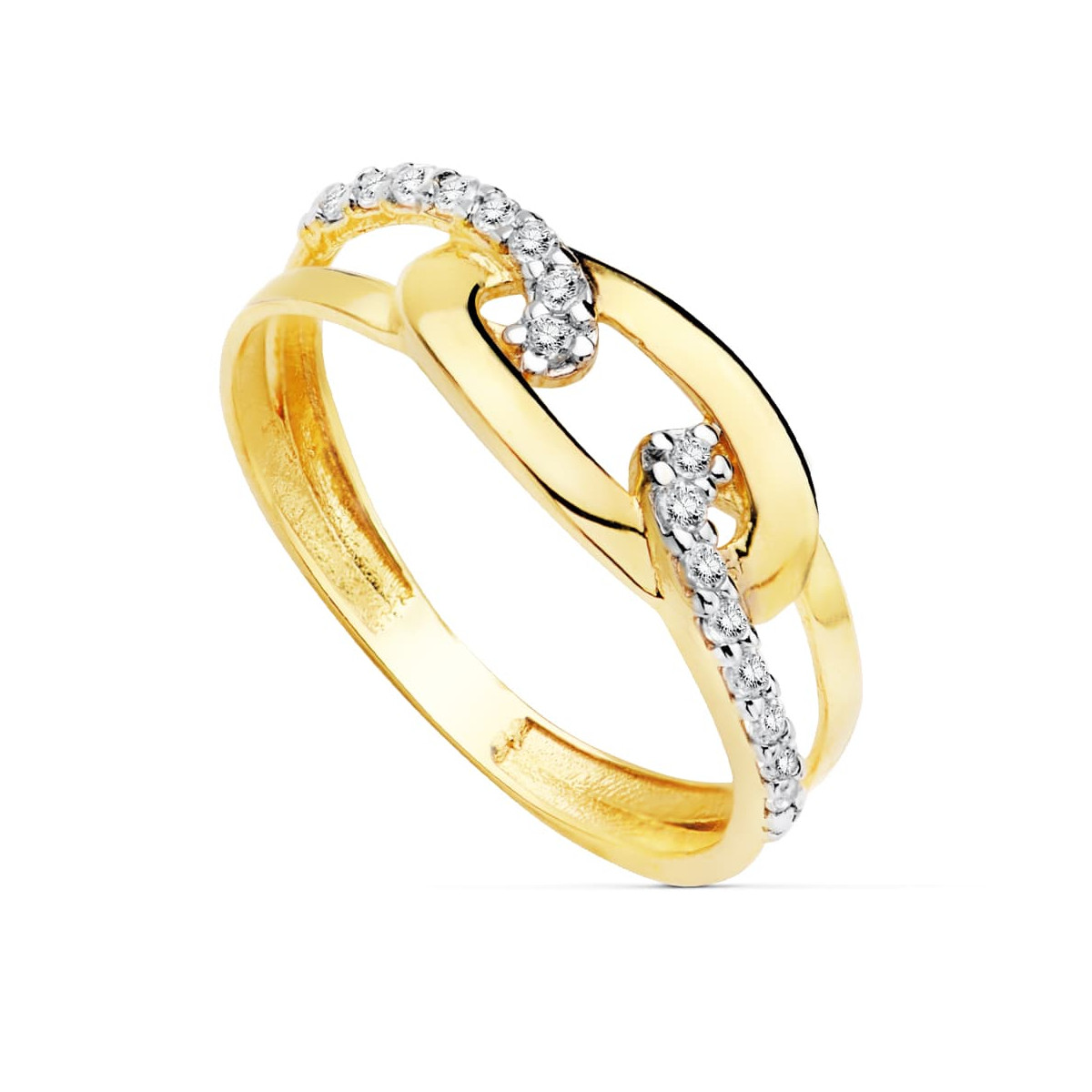 18K SORTIJA ORO BICOLOR CADENA CON CIRCONITAS. ANCHO: 6 MM