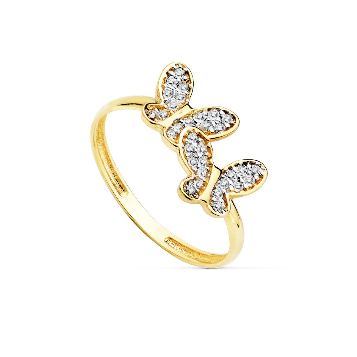 18K SORTIJA ORO BICOLOR CON DOS MARIPOSAS Y ALAS DE CIRCONITAS