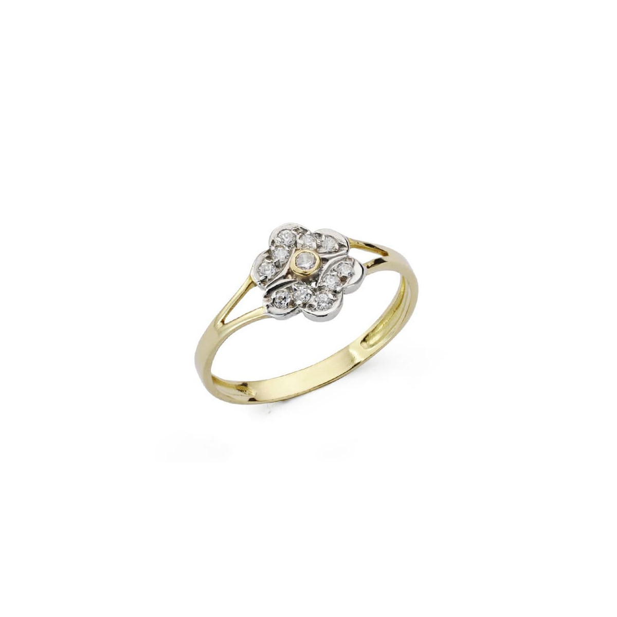 18K SORTIJA ORO BICOLOR FLOR CON CIRCONITAS. ANCHO: 8 MM