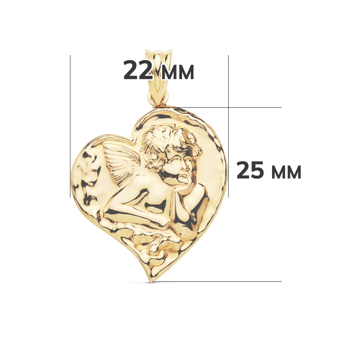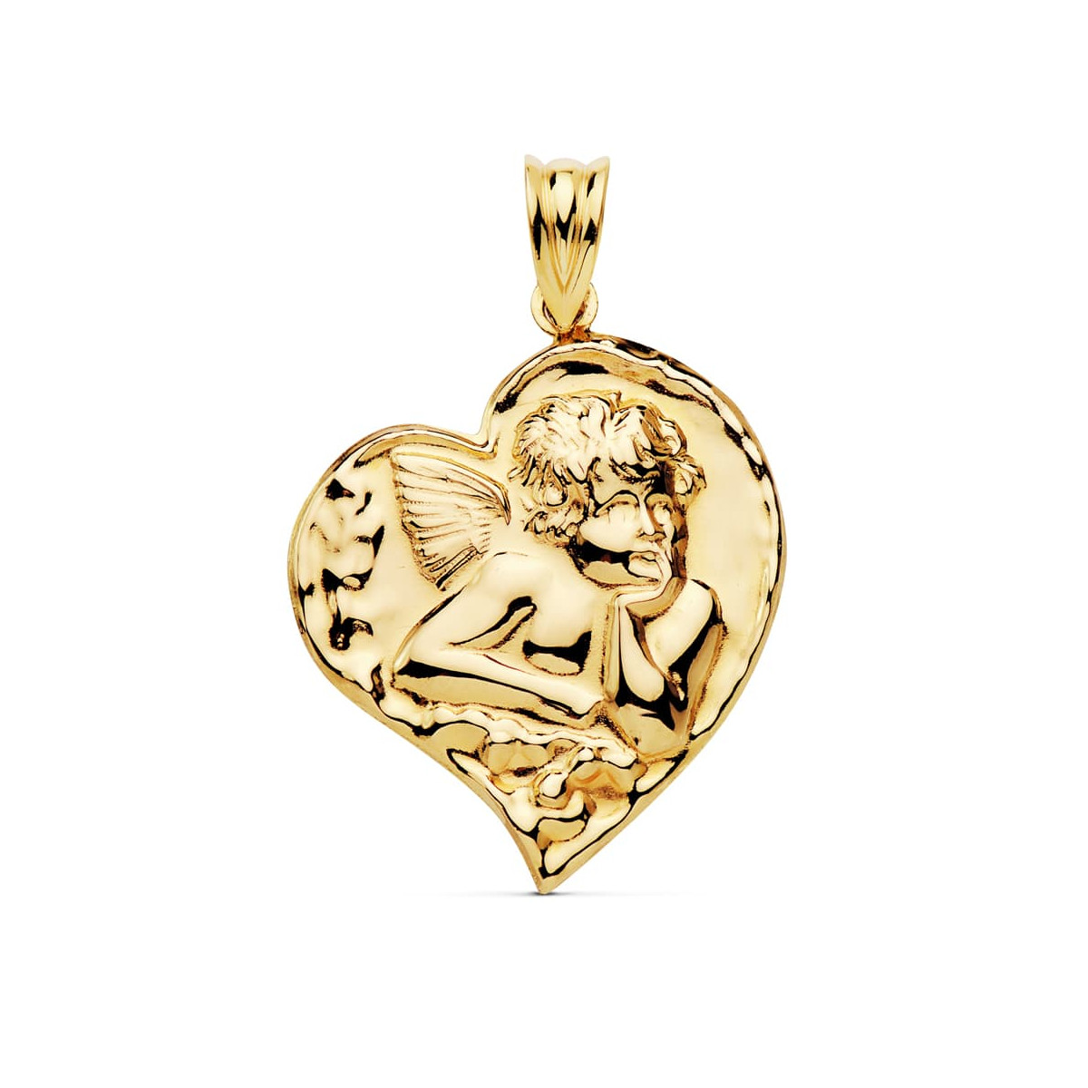 18K COLGANTE ORO AMARILLO ANGELITO CORAZON 25X22 MM