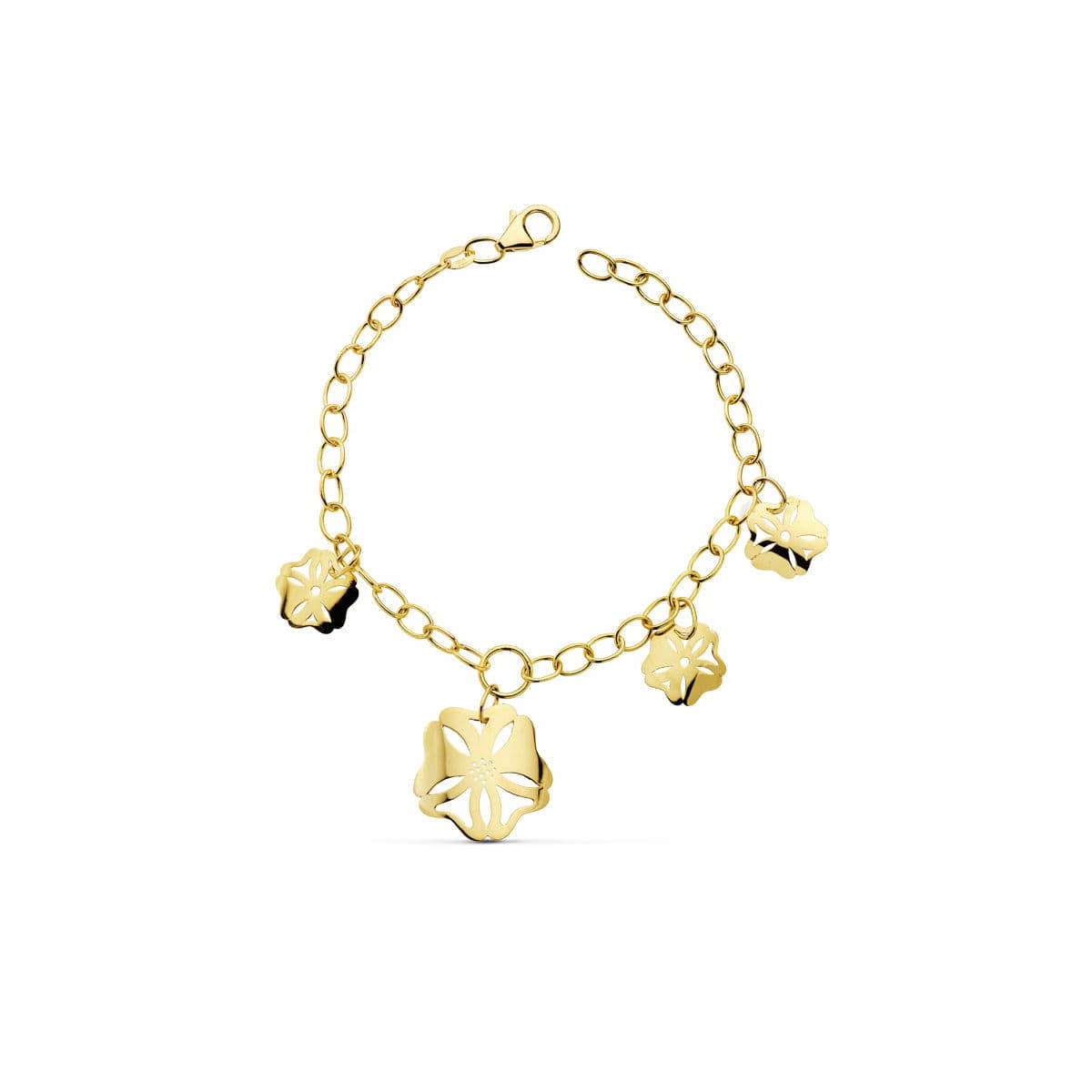 18K PULSERA CADENA Y FLOR ORO AMARILLO 18CM