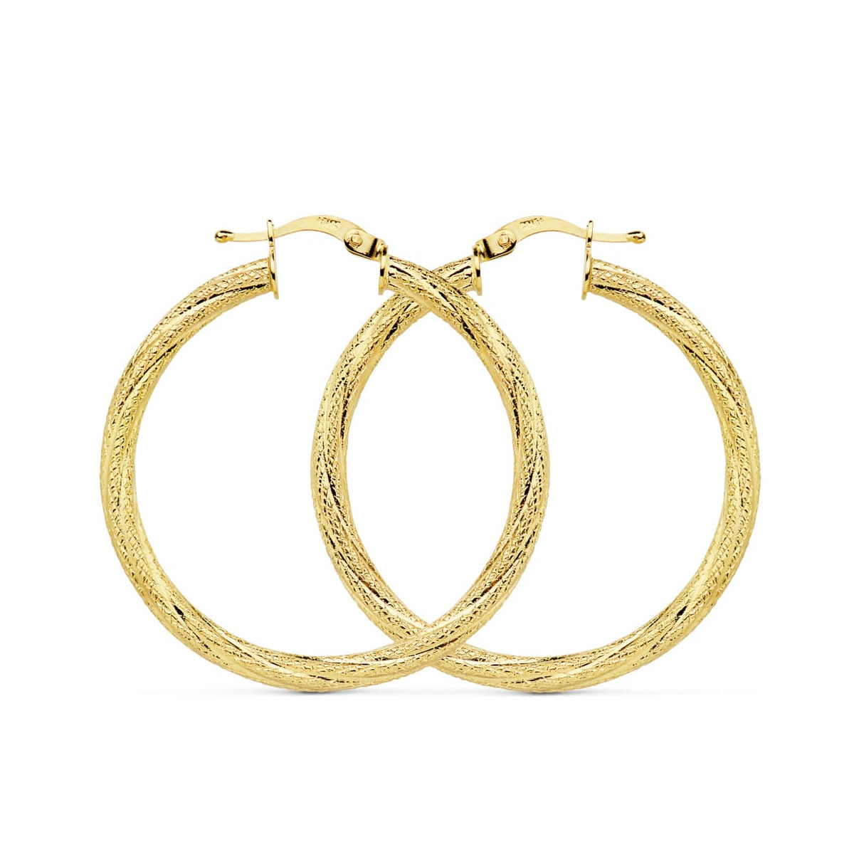 18K AROS ORO AMARILLO HUECOS GRANILLADOS 32X3 MM