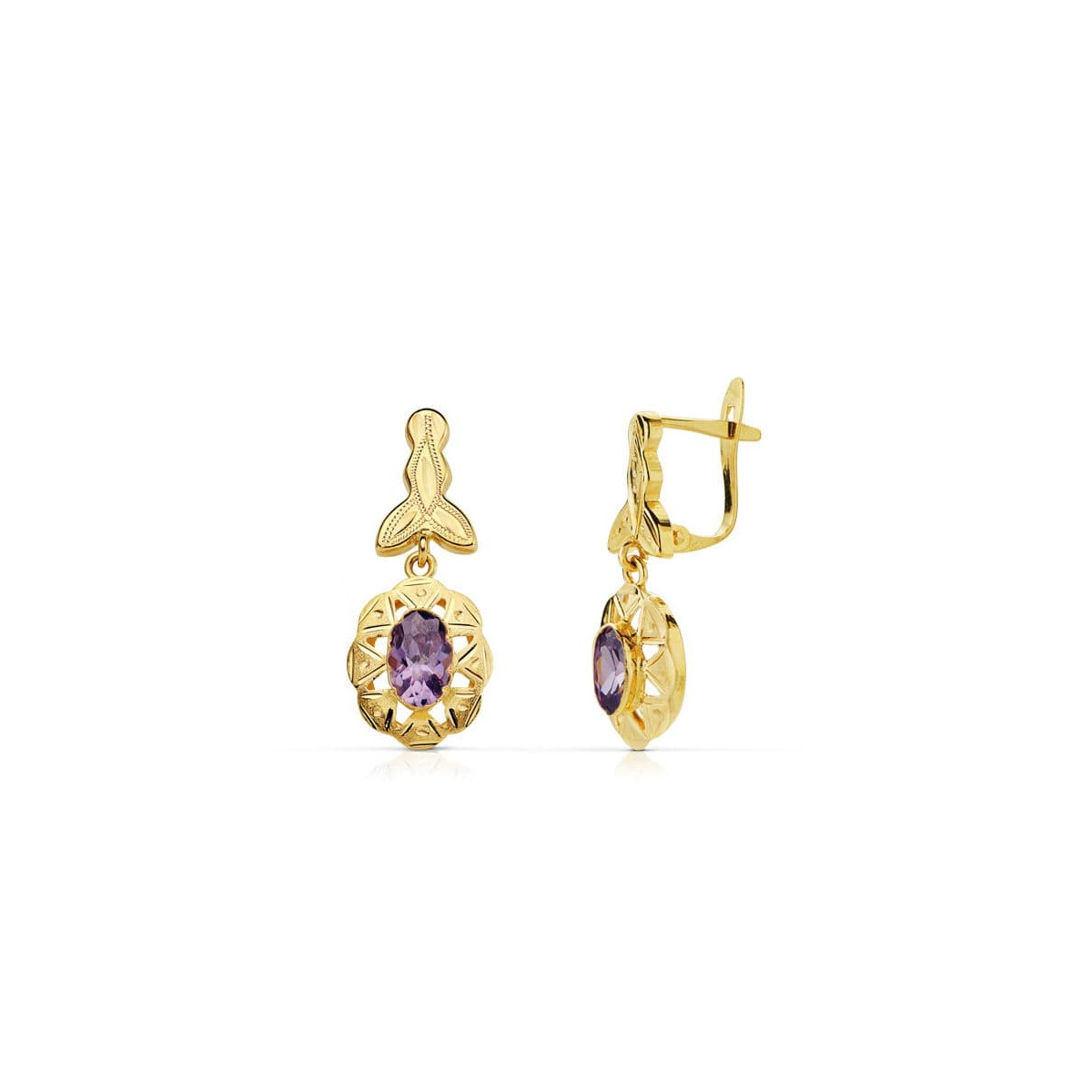 18K PENDIENTES ORO AMARILLO CUBANAS AMATISTA 23X10 MM CIERRE CATALÁN