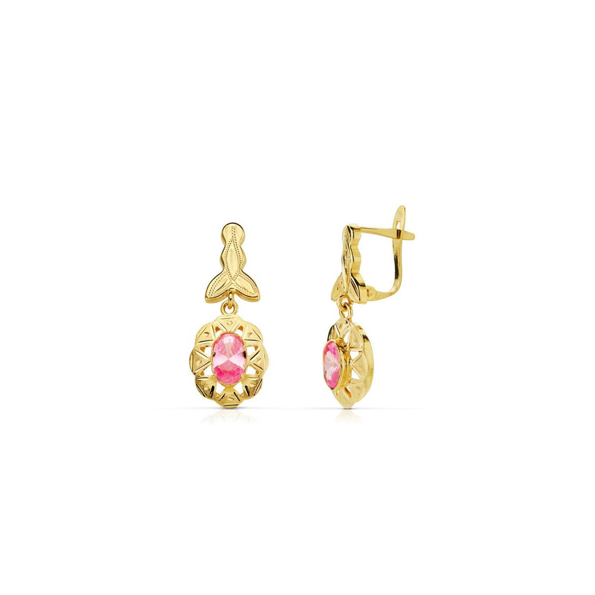 18K PENDIENTES ORO AMARILLO CUBANAS ROSA 23X10 MM CIERRE CATALÁN