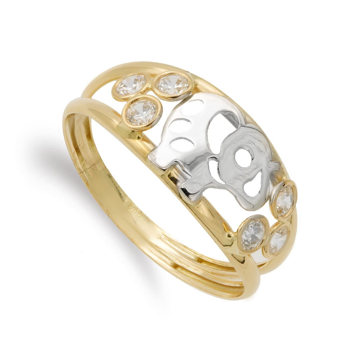 18K SORTIJA ORO BICOLOR DOBLE CUERPO ELEFANTE CALADO Y CIRCONITAS. ANCHO: 7 MM
