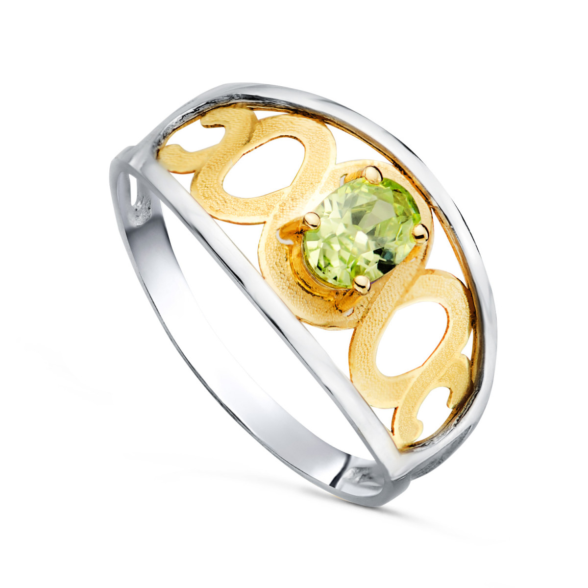 18K SORTIJA ORO BICOLOR MOTIVOS CALADA Y PIEDRA OVAL OLIVINA 6X 3,5 MM. ANCHO: 11MM