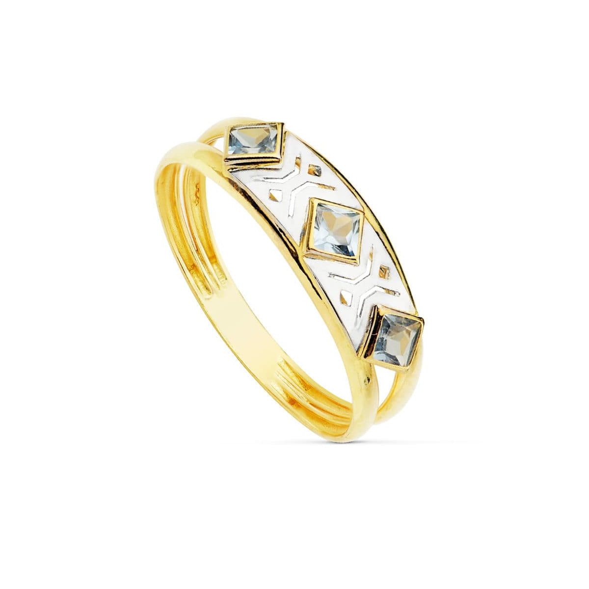 18K SORTIJA ORO BICOLOR DOBLE CUERPO CON CIRCONITA Y MOTIVOS CALADOS. ANCHO: 6 MM
