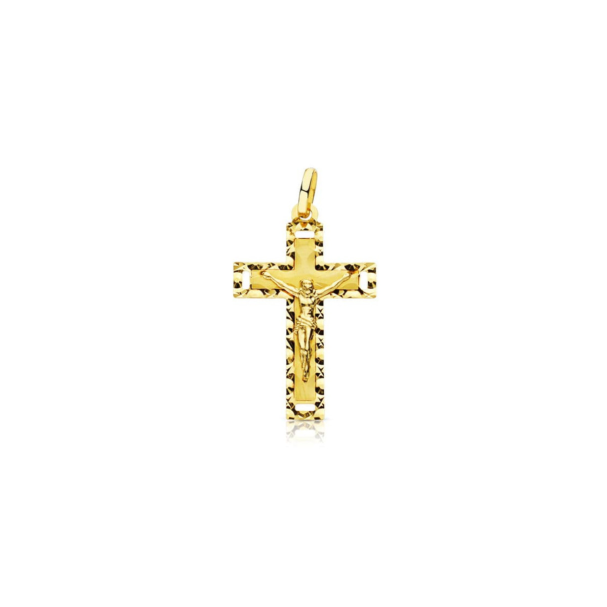 18K CRUZ ORO AMARILLO CON CRISTO TALLADA 27X17 MM