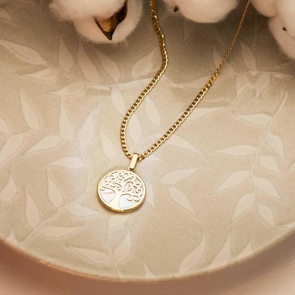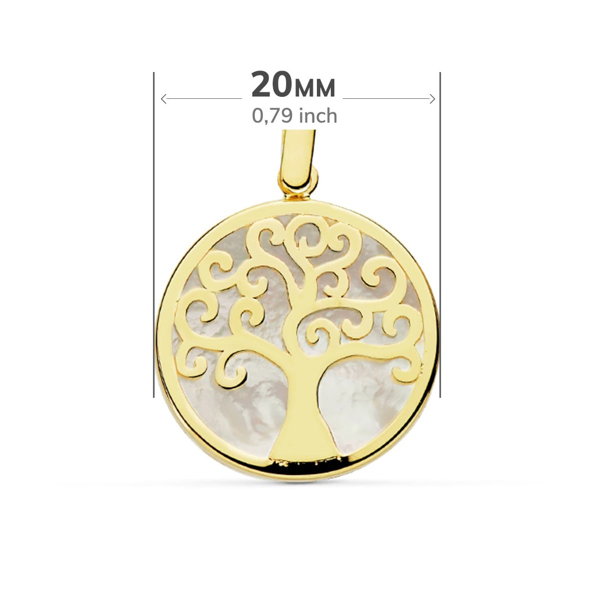 18K COLGANTE ORO AMARILLO NACAR ARBOL DE LA VIDA 20 MM
