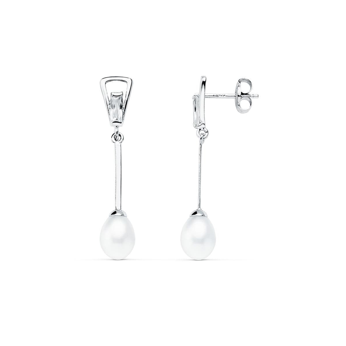 18K PENDIENTES ORO BLANCO PERLA 31X5 MM CIERRE PRESION