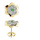 18K PENDIENTES ORO AMARILLO FLOR 6 HOJAS ESMERALDA CIRCONITA 6 MM CIERRE PRESION