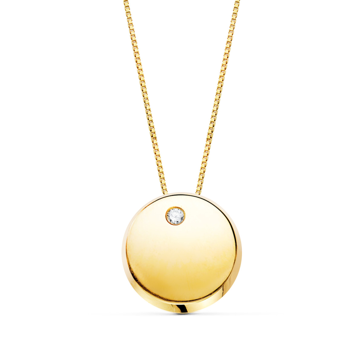 18K COLGANTE REDONDO CIRCONITA ORO AMARILLO CADENA 42CM