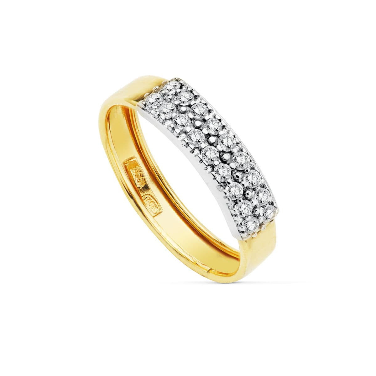 18K SORTIJA ORO BICOLOR BARRA DOBLE FILA DE CIRCONITAS. ANCHO: 4,5 MM