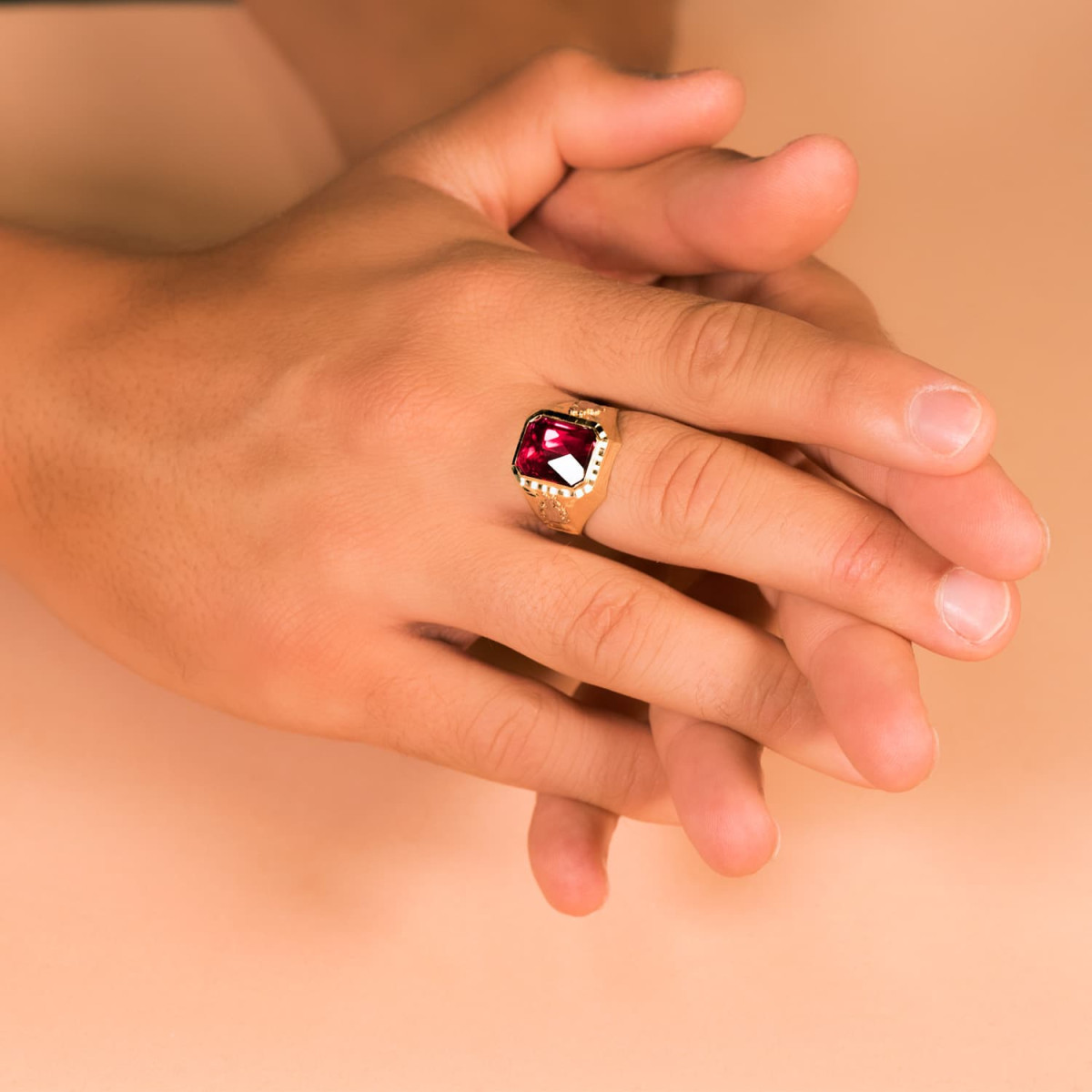 18K SELLO ORO AMARILLO CABALLERO RUBI SPINEL
