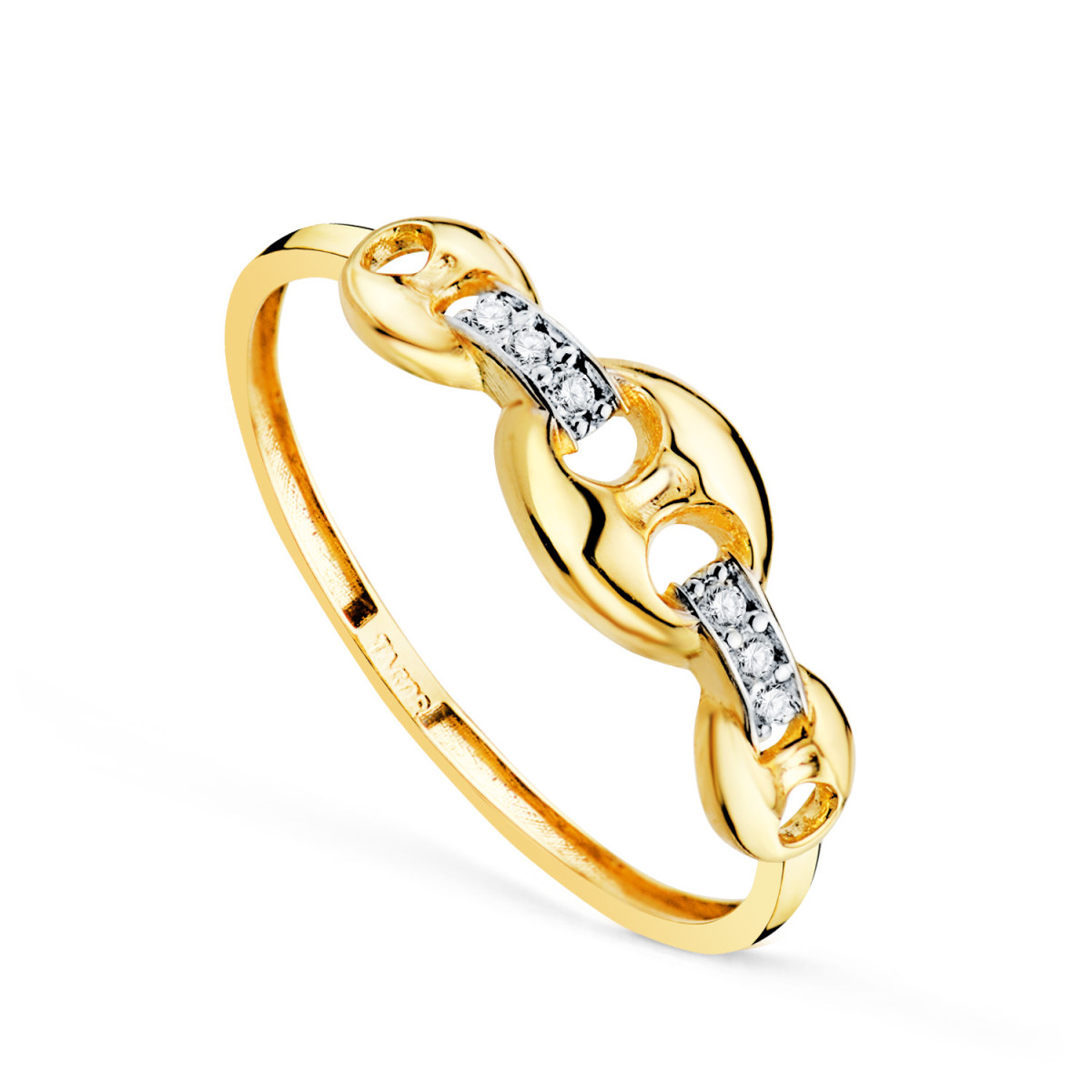 18K SORTIJA ORO BICOLOR CON ESLABONES NUDO DE BARCO Y CIRCONITAS. ANCHO: 5,4 MM