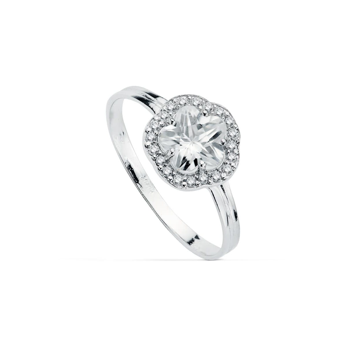 18K SORTIJA ORO BLANCO CON FLOR Y CIRCONITAS. ANCHO: 9 MM