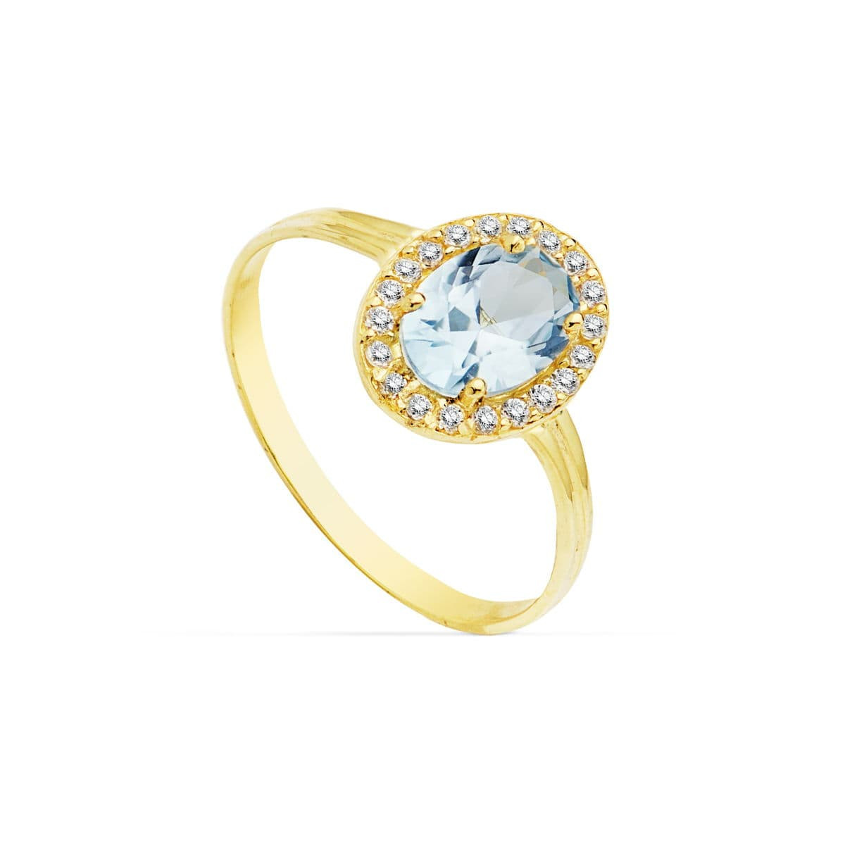 18K SORTIJA ORO AMARILLO CIRCONITA AGUAMARINA OVAL 7X5 MM. ANCHO: 10 MM
