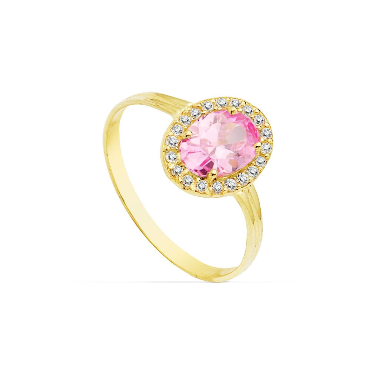 18K SORTIJA ORO AMARILLO CIRCONITA ROSA OVAL 7X5 MM. ANCHO: 10 MM