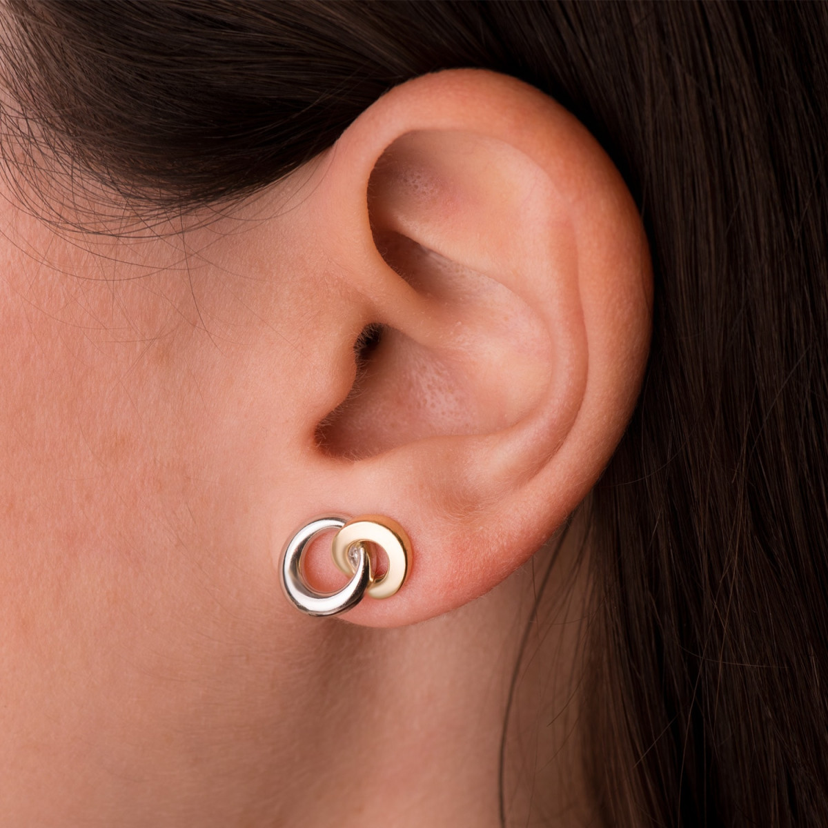 18K PENDIENTES ORO BICOLOR DOBLE ARO BRILLO 13 X 10 MM. CIERRE PRESION