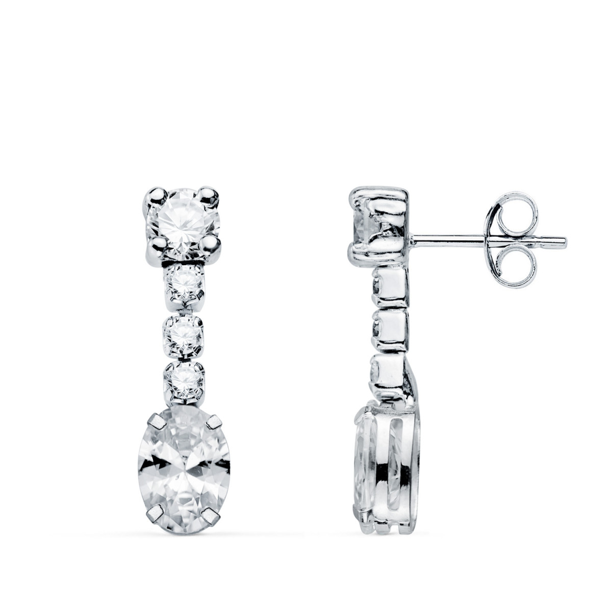 18K PENDIENTES ORO BLANCO CIRCONITA BLANCA EN FORMA OVAL Y CIRCONITAS. 20X5 MM. CIERRE PRESION