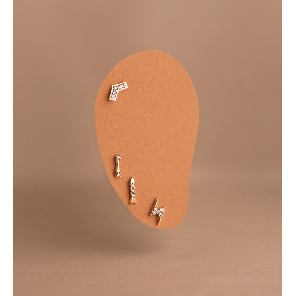 18K PIERCING ORO AMARILLO RAYO CON CIRCONITAS. MEDIDA: 7X4 MM. CIERRE TUERCA