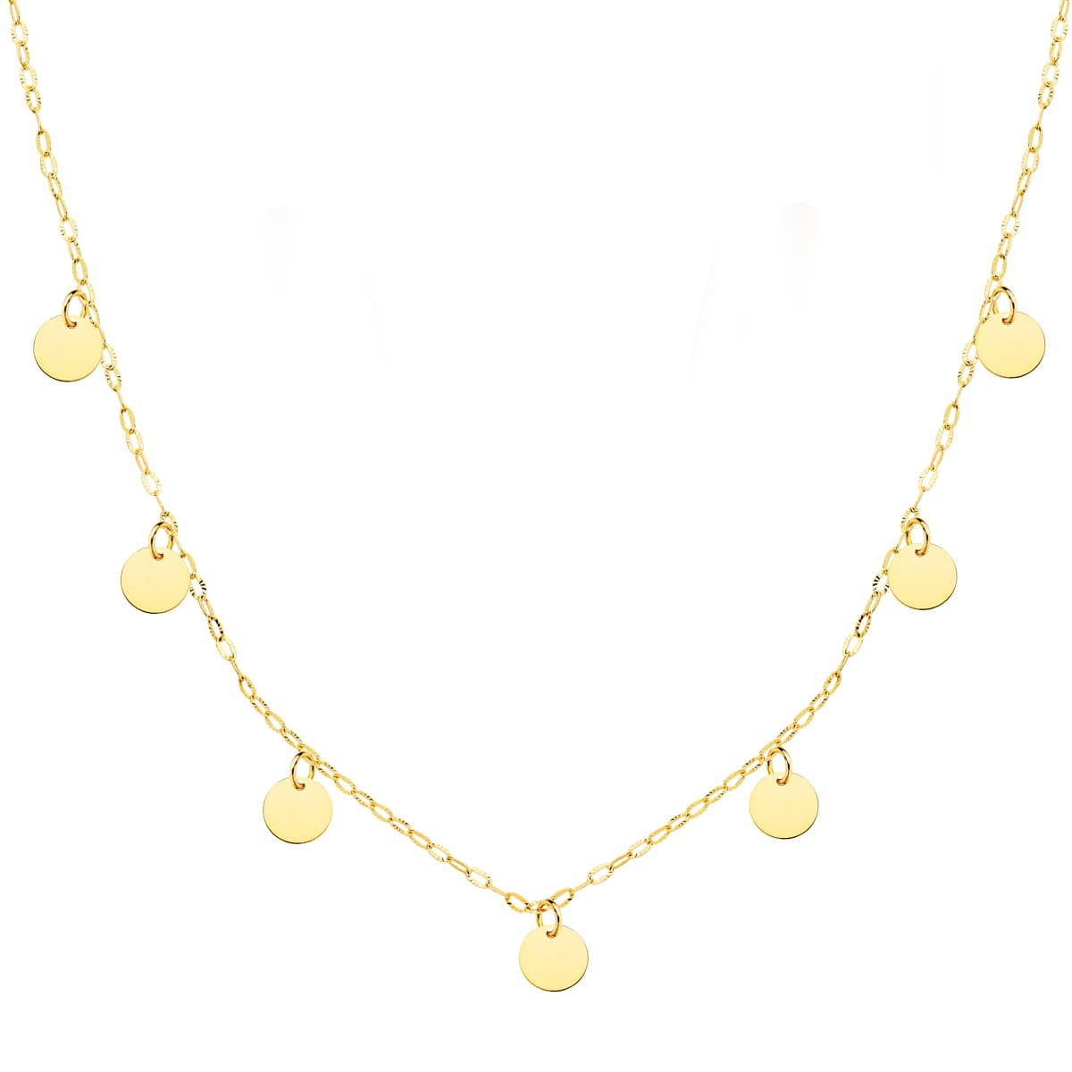 18K GARGANTILLA ORO AMARILLO PLACA CHAPAS REDONDAS 5 MM CADENA FORZADA 45CM