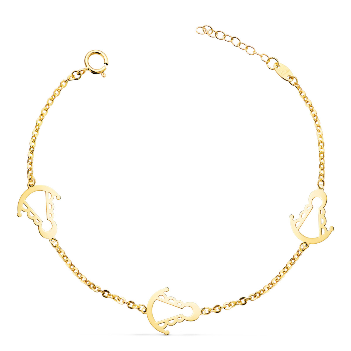 18K PULSERA ORO AMARILLO TRES SLIUETAS VIRGEN ROCIO 14X11 MM CON. LARGO: 15,5 3 CM