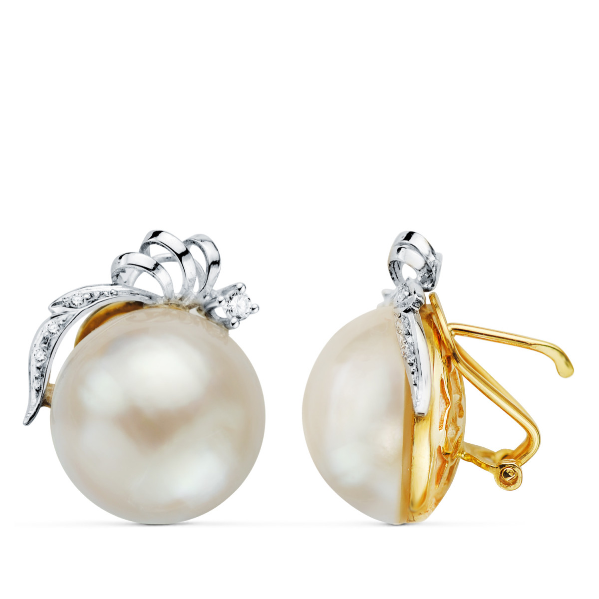 18K PENDIENTES ORO BICOLOR PERLA JAPONESA 15-16 MM. MEDIDA: 21X17MM. OMEGA