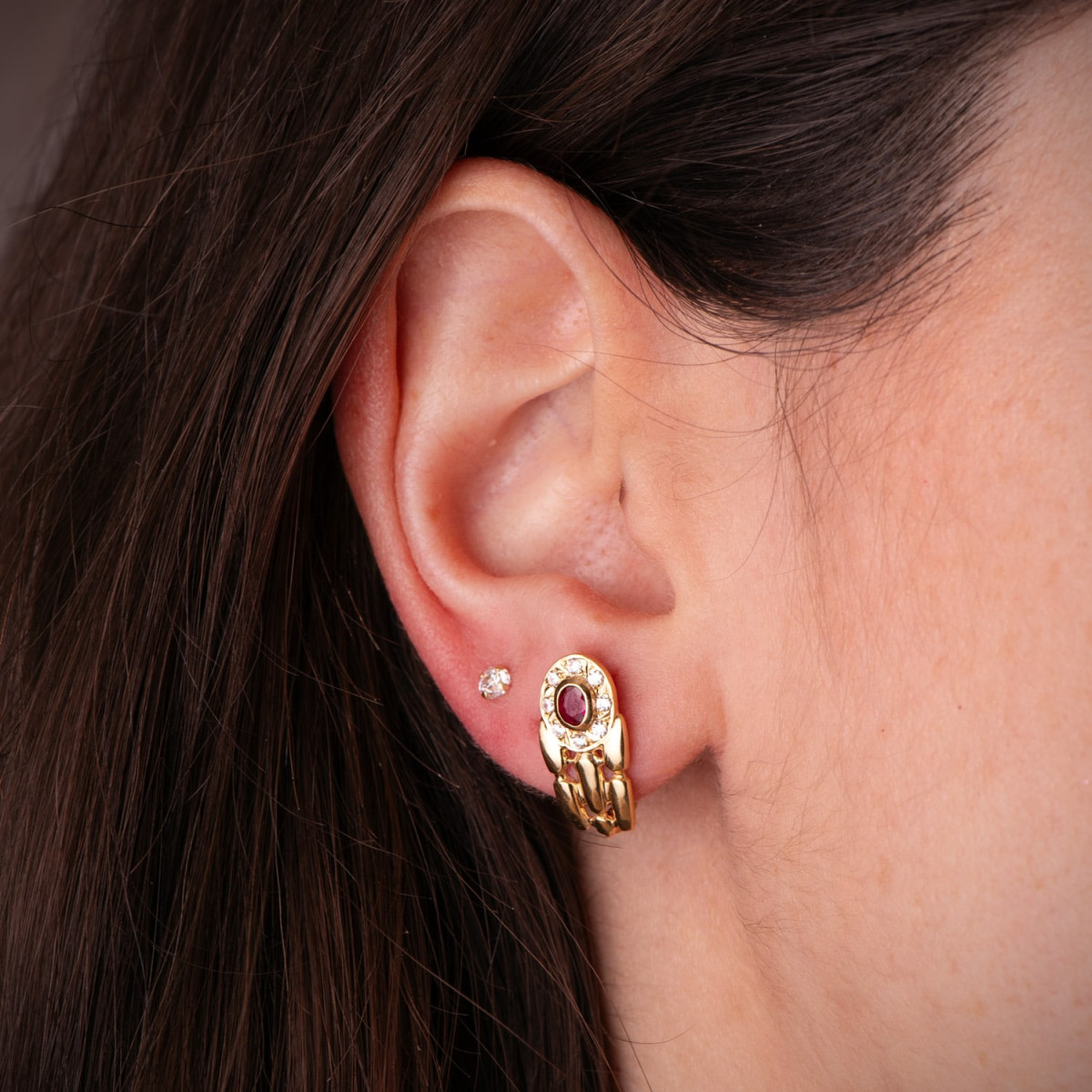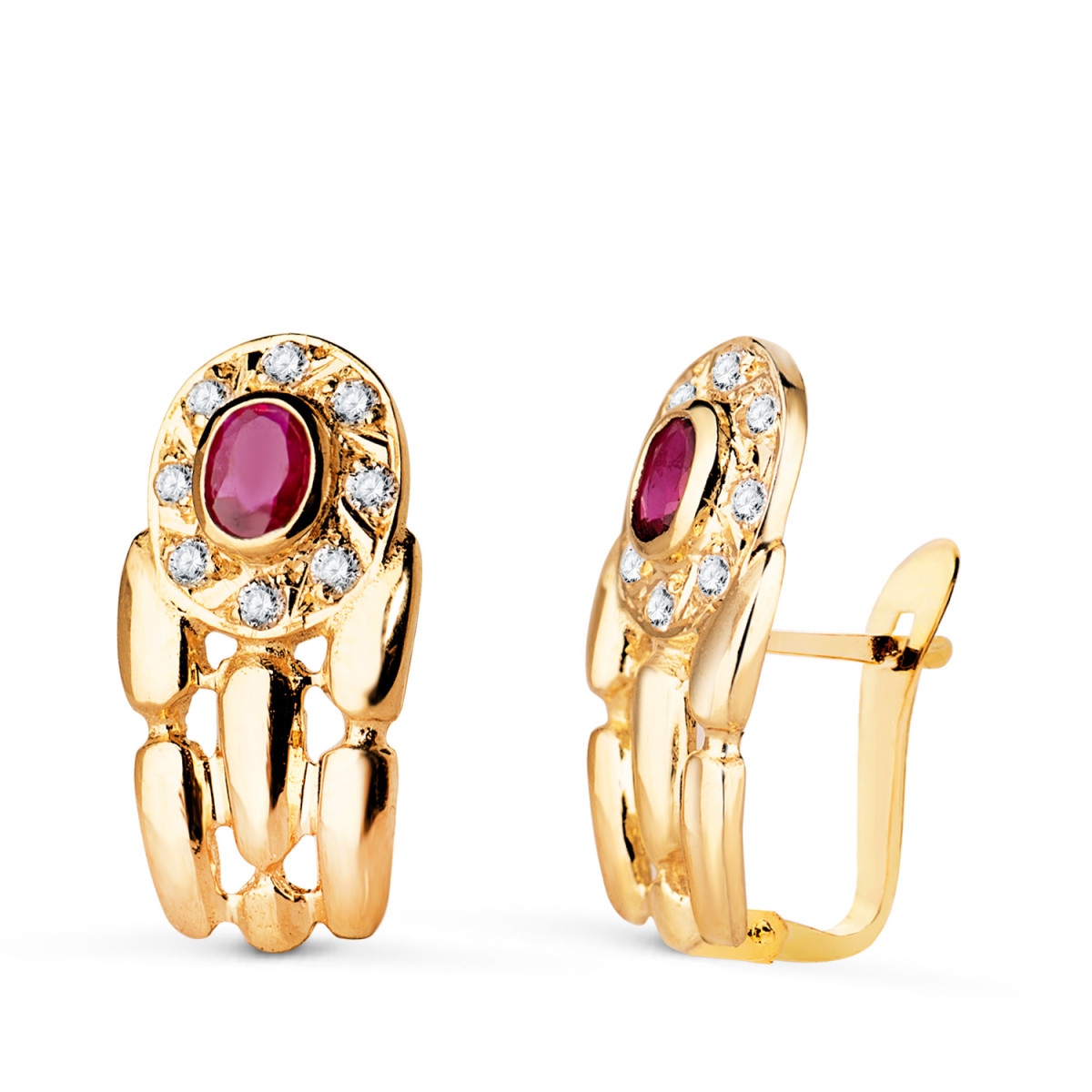 18K PENDIENTES ORO AMARILLO PANTER CON RUBÍ Y CIRCONITAS. 16 X 8 MM. CIERRE CATALAN