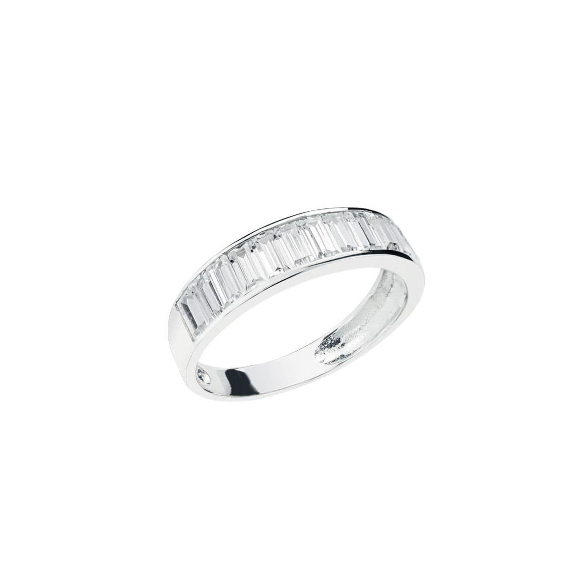 9K SORTIJA ORO BLANCO CON CIRCONITA EN CARRIL. ANCHO: 4,5 MM