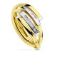 9K SORTIJA ORO BICOLOR CON BANDAS Y CIRCONITAS EN CARRIL. ANCHO: 10 MM