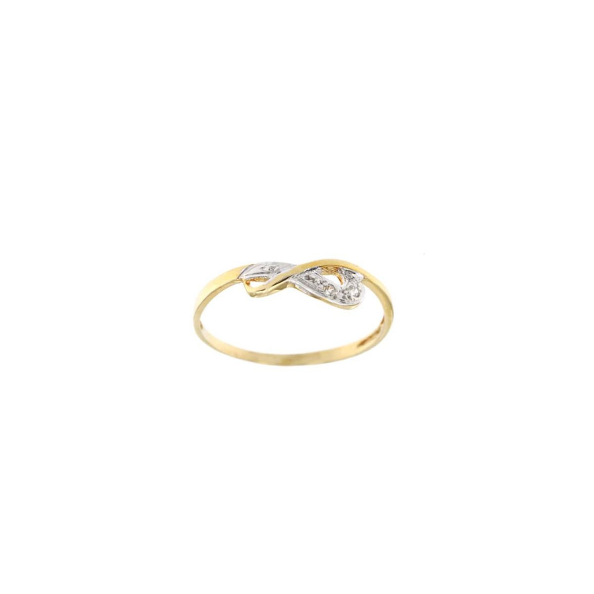 9K SORTIJA ORO BICOLOR ENTRELAZADA CON CIRCONITAS. ANCHO 7 MM