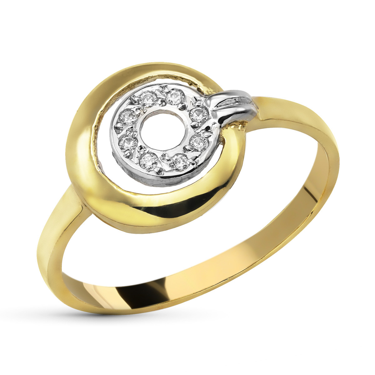 9K SORTIJA ORO BICOLOR MOTIVO REDONDO CALADO CON CIRCONITAS. ANCHO: 10 MM