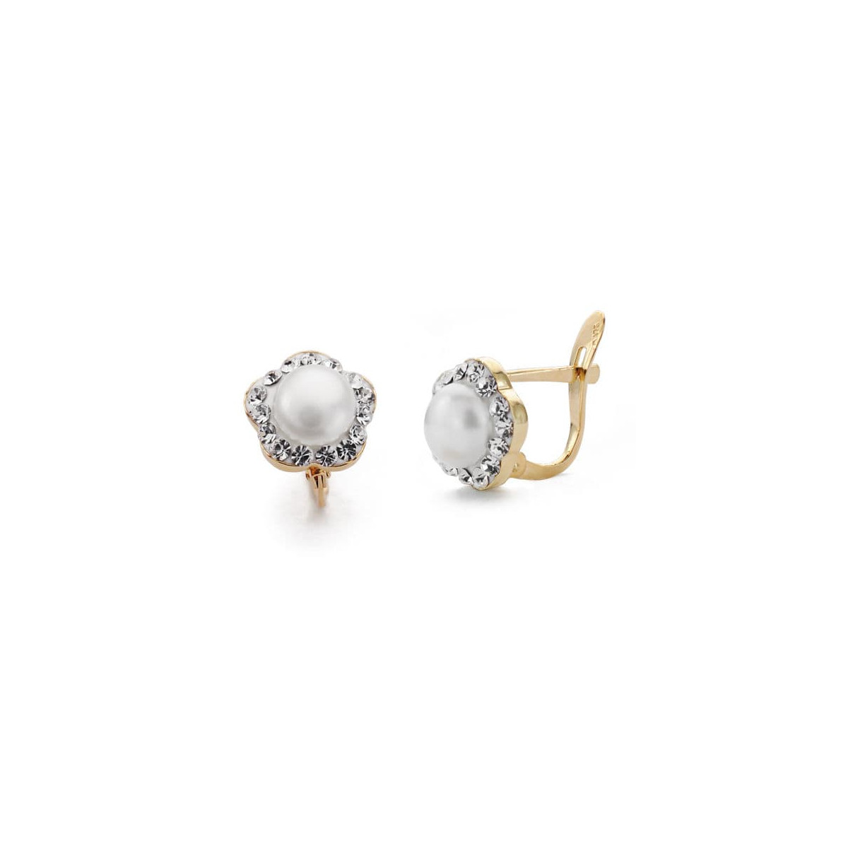 9K PENDIENTES ORO BICOLOR FLOR PERLA 9X9 MM CIERRE CATALAN