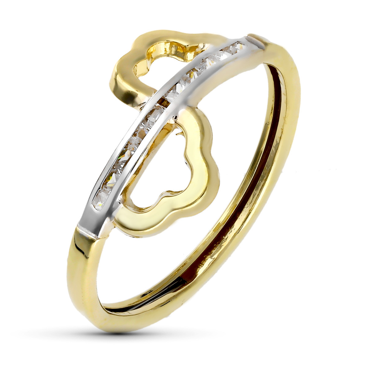 9K SORTIJA ORO BICOLOR FLOR PARTIDA CON CIRCONITAS EN CARRIL. ANCHO: 10 MM