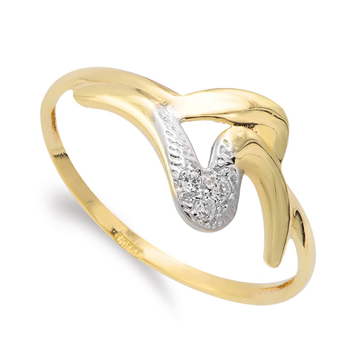 9K SORTIJA ORO BICOLOR MOTIVO ONDAS CON CIRCONITA. ANCHO: 9 MM