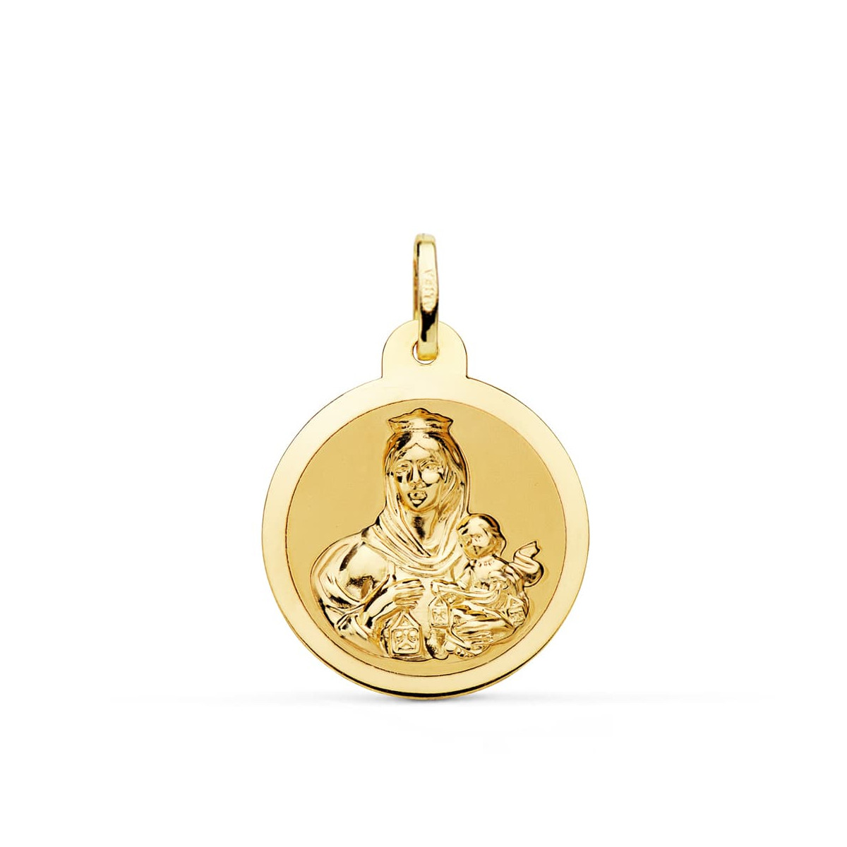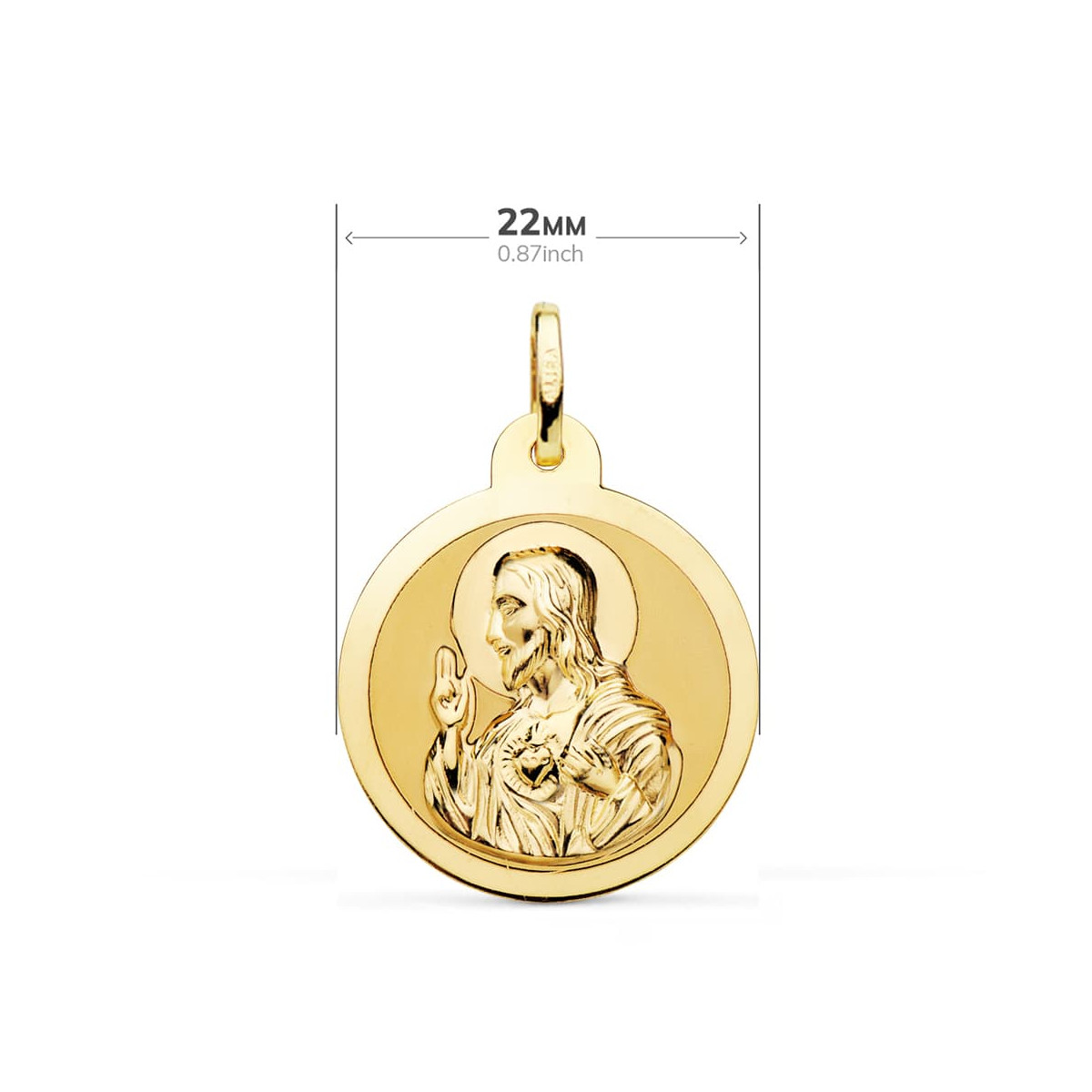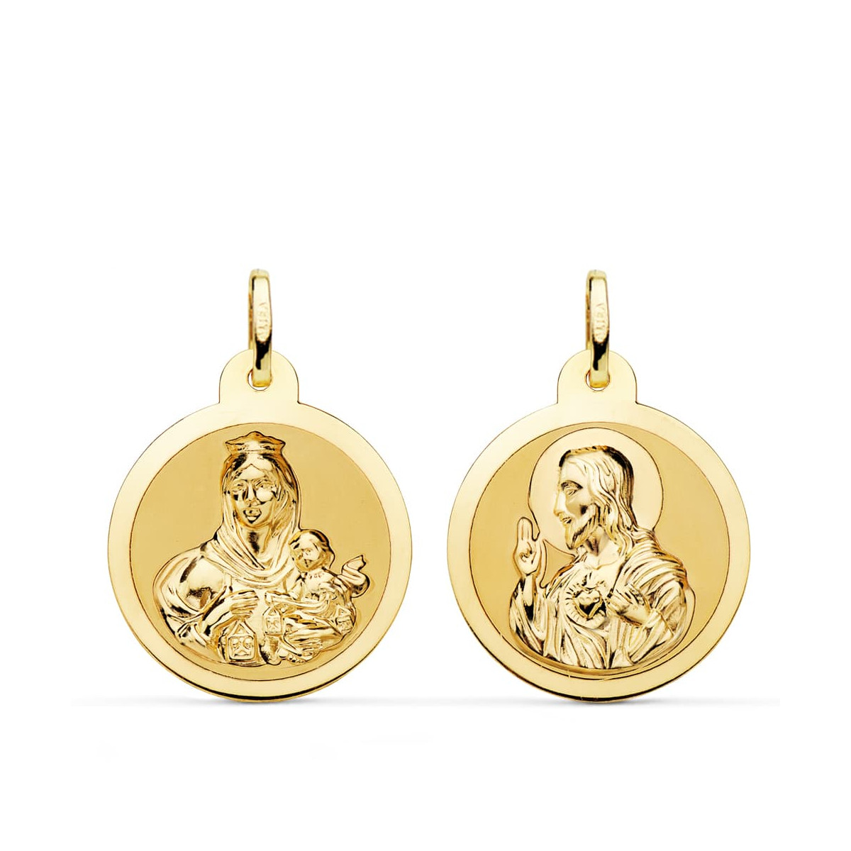 9K ESCAPULARIO ORO AMARILLO BRILLO VIRGEN DEL CARMEN Y CORAZON DE JESUS 22 MM