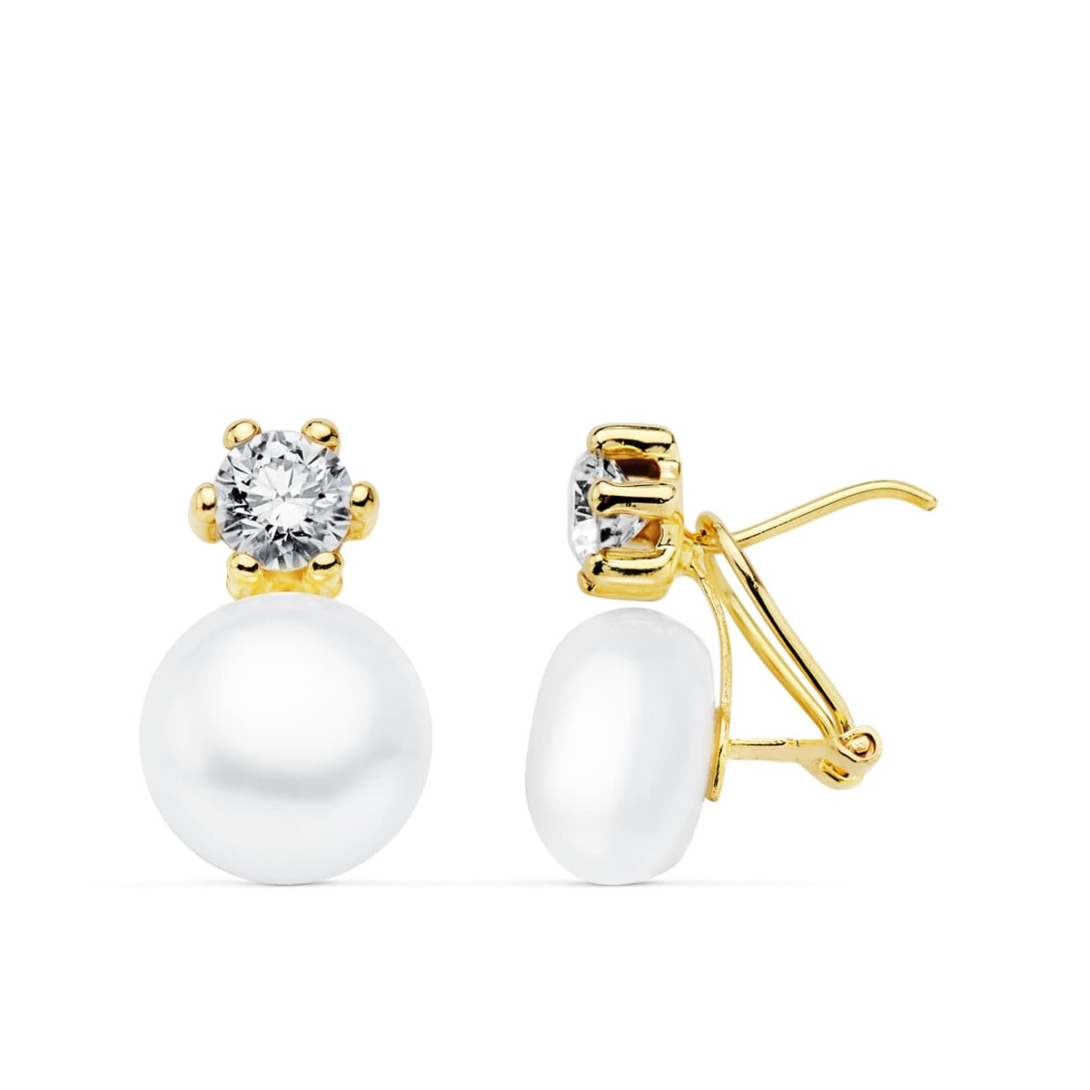18K PENDIENTES ORO AMARILLO PERLA 17X10 MM CIERRE OMEGA