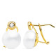 18K PENDIENTES ORO AMARILLO PERLA Y CHATON. 15X10 MM CIERRE OMEGA
