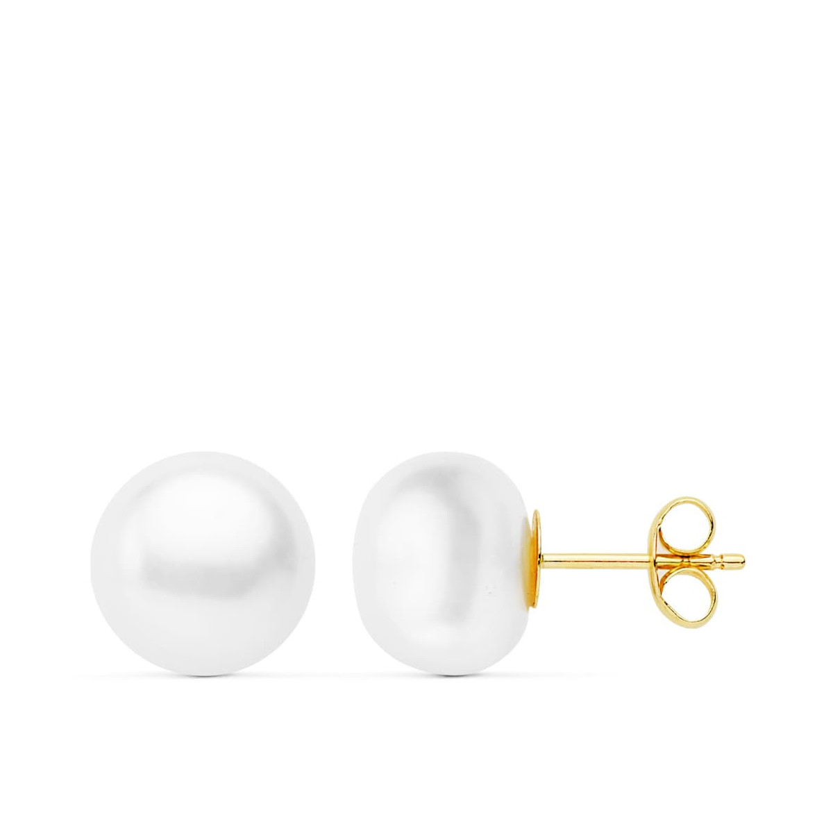 18K PENDIENTES PERLA BOTON ORO AMARILLO 9-9.5 MM CIERRE PRESION