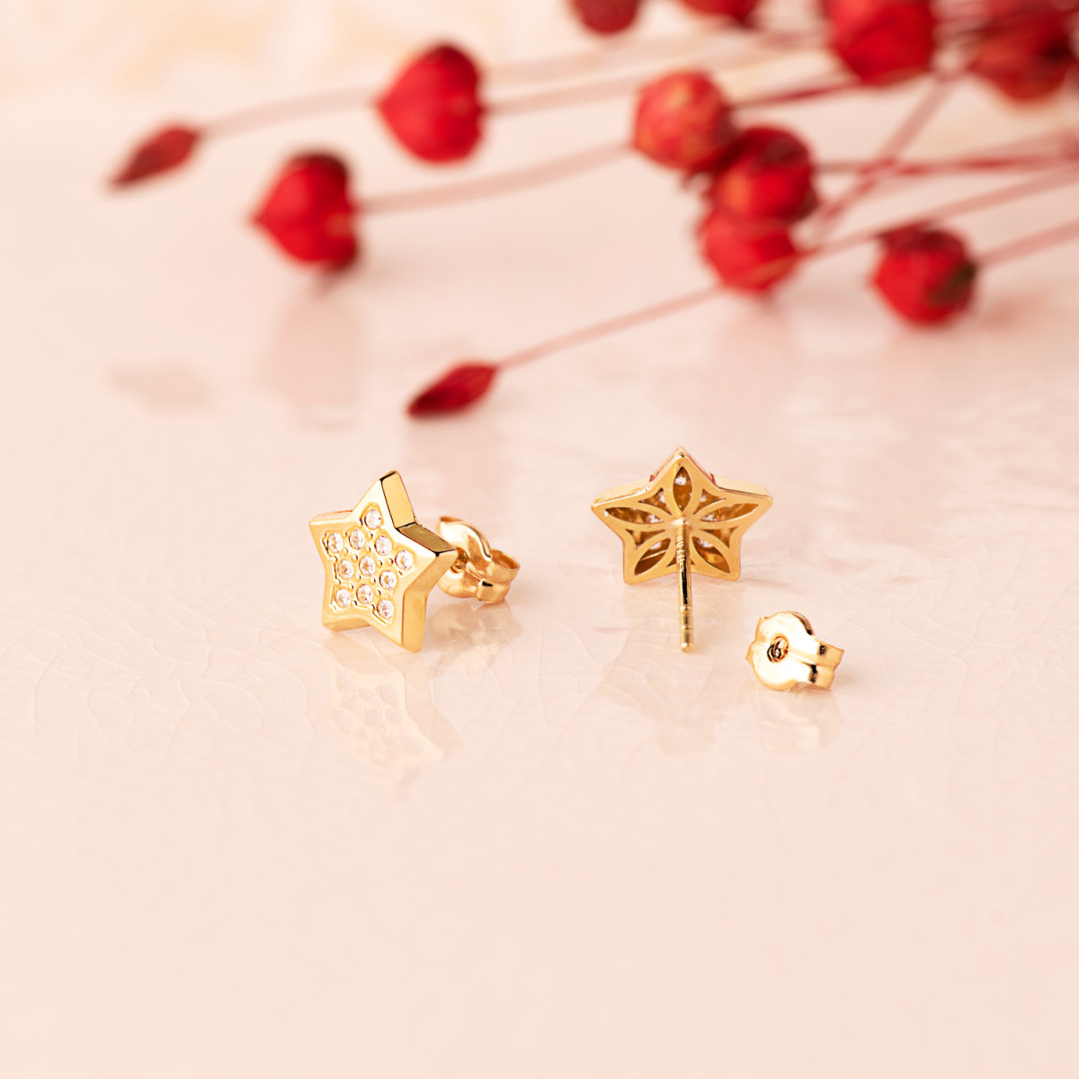 18K PENDIENTES ORO AMARILLO ESTRELLAS CON CIRCONITA 9X9 MM. CIERRE PRESION