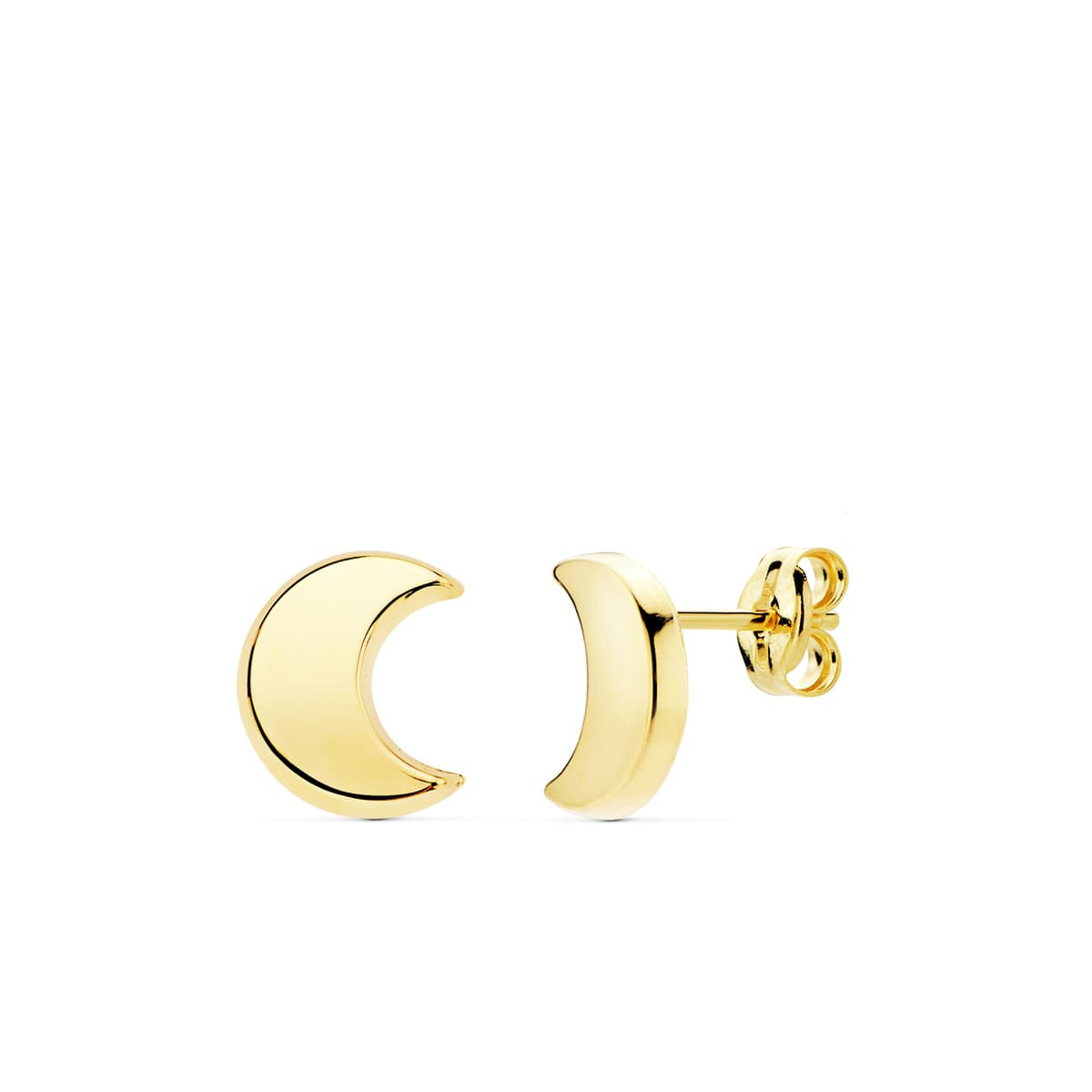 18K PENDIENTES ORO AMARILLO MEDIA LUNA LISA 9X8 MM. CIERRE PRESION
