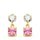 18K PENDIENTES ORO AMARILLO DOS CUERPOS CON CIRCONITA Y PIEDRA ROSA CUADRADA 14 X 5MM. CIERRE PRESION