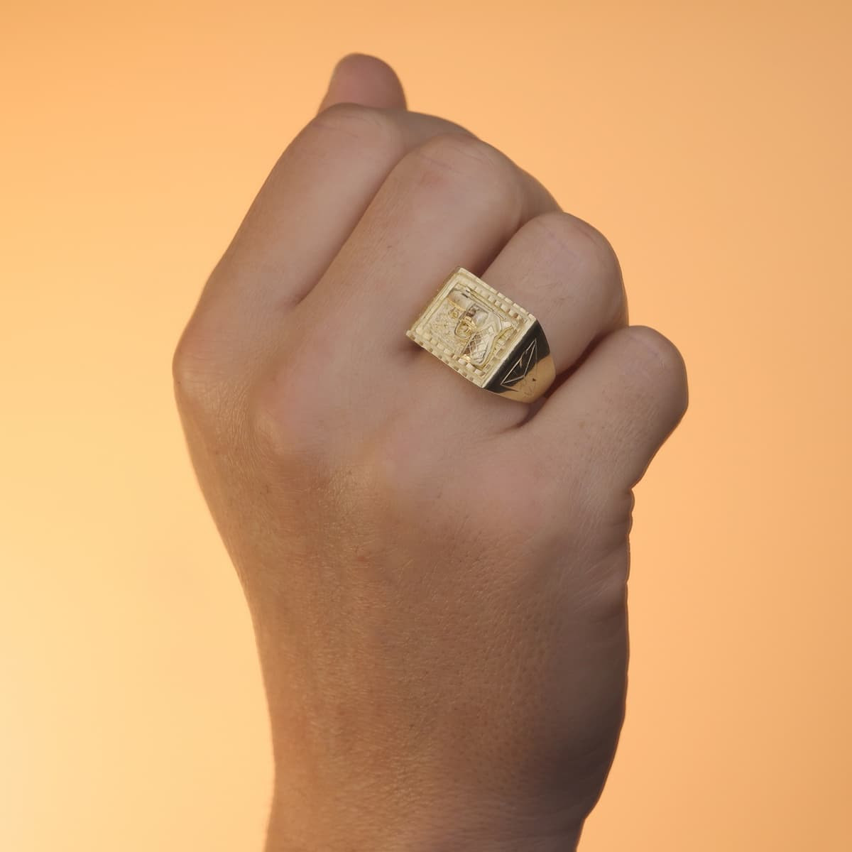 18K SELLO ORO AMARILLO CABALLERO PISTOLA TALLADA RECTANGULAR 21X16 MM
