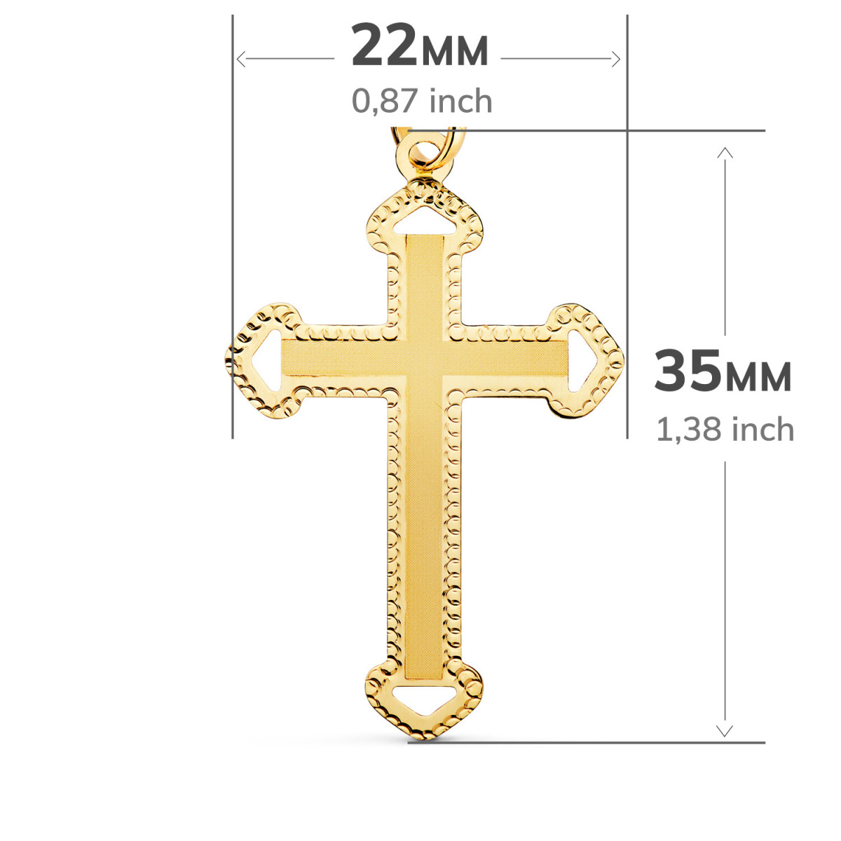 18K CRUZ ORO AMARILLO SIN CRISTO TALLADA Y MATIZADA 35X22 MM